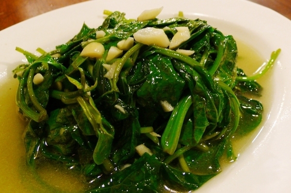 ↓ 炒地瓜葉,不用猜也知道是為我點的。 (我本來叫它“空心菜”,看還有幾個人會笑我呆~ 哈~)