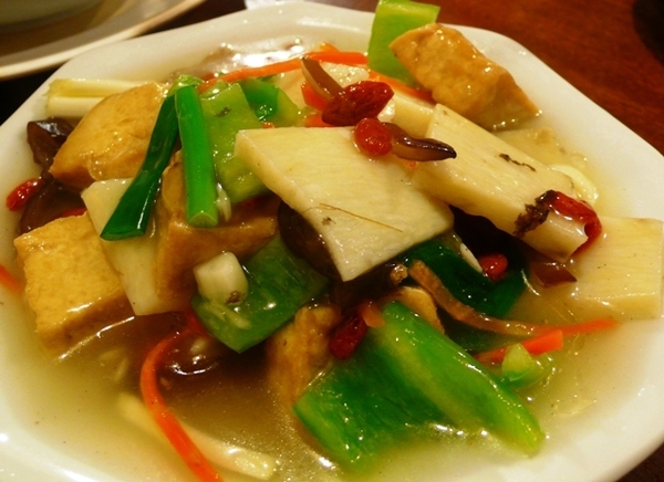 ↓ 這道我忘了叫什麼名字,暫時叫“豆腐炒山藥”好了,個人覺得如果加點辣或是口味重點更好,而太白粉如果可以少點就更棒囉。