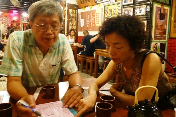↓ 爸媽正努力思考著吃什麼好,八伯父與八伯母今天也跟我們一同吃飯,但他們把點菜的任務交給我爸媽,我和小弟則在旁邊納涼...